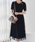 パール調の優しい雰囲気に、ビジューがきらりと大人っぽく煌めく小ぶりなサイズ感のブローチです。