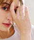 精密なカッティングのキュービックジルコニアとパール調を使用したキレイな印象にしてくれるリング。