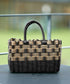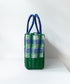 ポリエチレンコードをチェック柄のように編み込んだ夏にピッタリのかごバッグ。