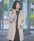 しっとりとした質感のスエードとふわふわのフェイクファーがアクセントになったフード付きのコートです。