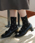 高見えするジャカードソックスはパンプスなどを合わせたシックなコーディネートにも、