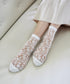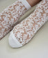 エレガントな蔦柄が美しいデザイン性の高い透け感のある柄靴下です。