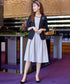 パンツやスカート、ワンピースなど様々なアイテムと合わせやすい丈で、 オフィスはもちろんデイリーでも活躍します。