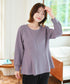 襟元をすっきり見せてくれるサイズのラウンドネックでカットソーながらキレイ見えするデザインでまとめました。