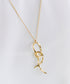 柔らかなリボンのようなツイストリングモチーフが胸もとで揺れる立体的なロングネックレス。