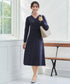 ころんとしたくるみボタンがかわいい、プリーツニットワンピースです。