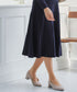 シルエットは、人気のフィット&フレア♪ ウエストから広がるフレアラインが女性らしさを印象付けます。