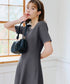 【アウトレット】クールネック半袖ニットフレアワンピース