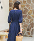 背中にはゴールドのスナップボタン付きで、後ろ姿にもさりげないアクセントになります。