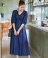 バスト下にギャザー入りで美しいラインを描くデニムワンピースです。