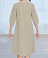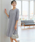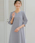キーネック風のデザインとパールがエレガントな雰囲気を演出してくれるワンピースです。