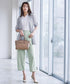 型くずれしないセンターピンタックと、さらりとしたリネンタッチの生地で作る、きれいなレッグラインが叶うワイドパンツです。