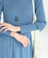 身頃部分がリブ編みになったワンピースは程よく体にフィットして美しいシルエット。
