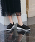 スリッポンでは珍しいヒールと同様の脚長効果が叶います。