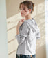 首裏もしっかり守れるパーカー付きデザイン。ワンピーススタイルに合わせやすいショート丈◎