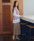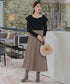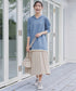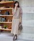 動くたびに、プリーツの凹凸の表情が軽やかな雰囲気を演出すると同時に、 プリーツが描く縦ラインが脚長効果を作り出します。