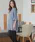 袖口のスリットから覗くシフォンが、動くたびに軽やかに揺れ、女性らしい雰囲気を演出します。