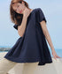 後ろ姿のニュアンスが女性らしさを引き立ててくれるチュニックです。